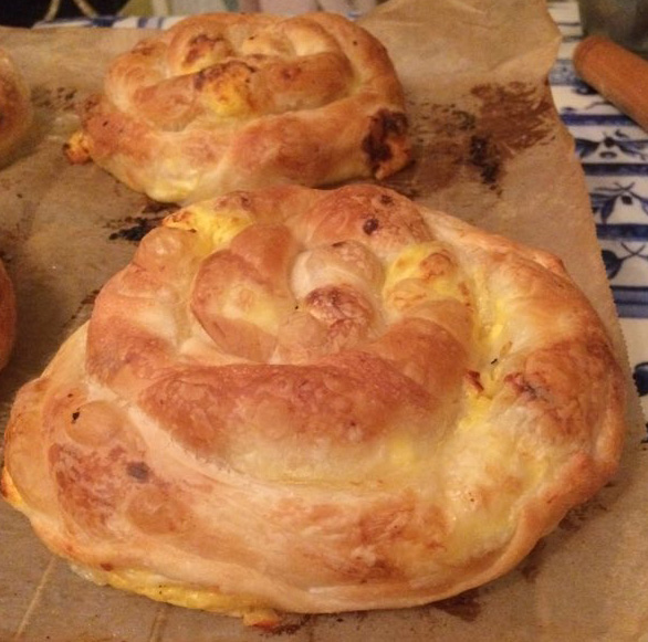 Aluat întins, ouă, varză, ceapă ...