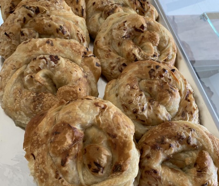 Aluat întins, ouă, varză, ceapă ...